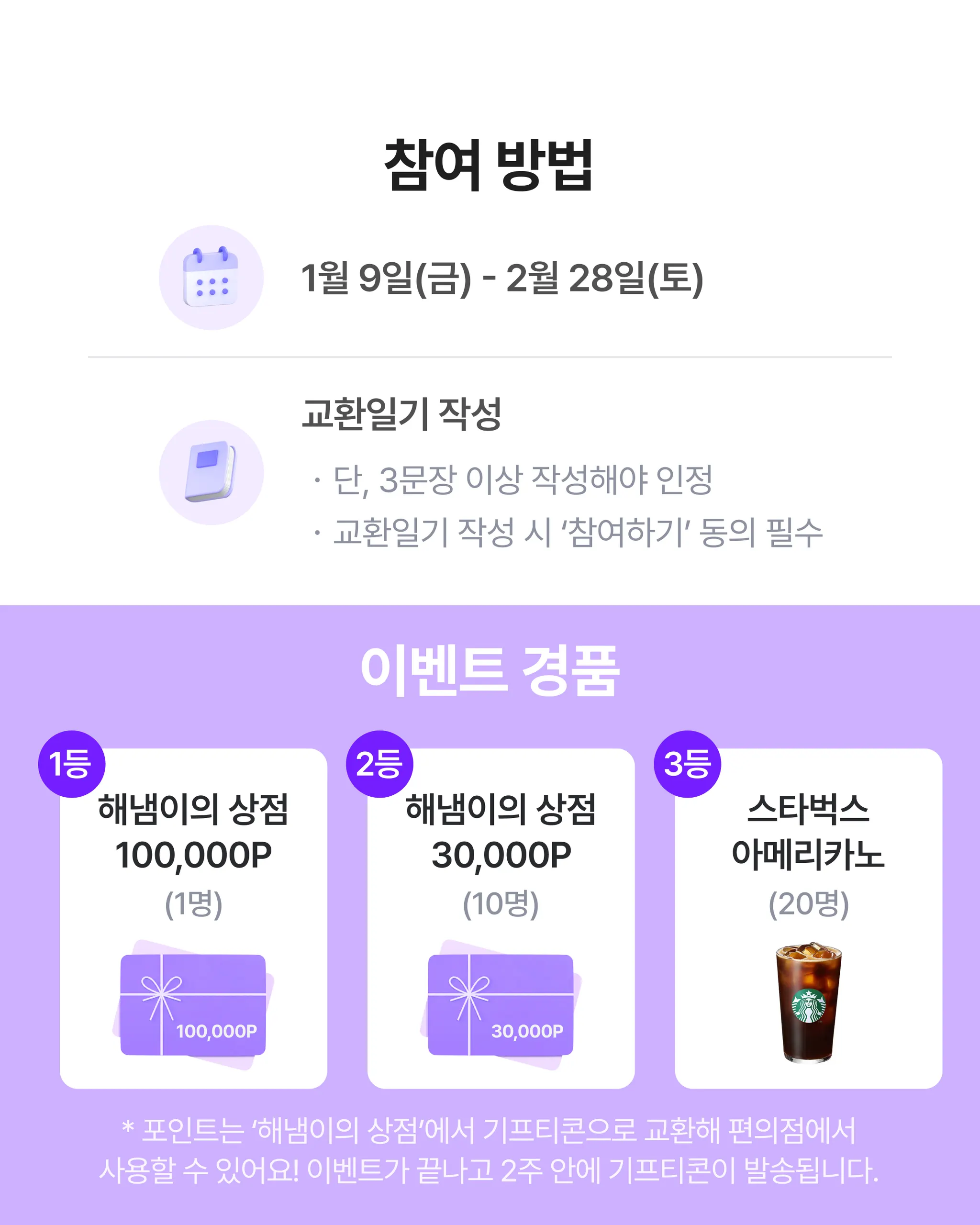 [진행중인 Event] 제2회 교환일기 챌린지 - 교환일기 작성하고 기프티콘 받자! (~2/28)
