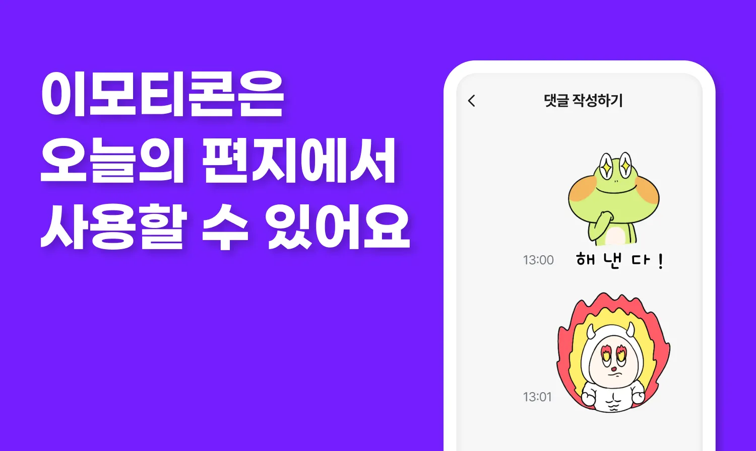 오늘의 편지’를 보다 즐겁게 사용하실 수 있도록 해낸다팀이 이모티콘을 개발했어요.