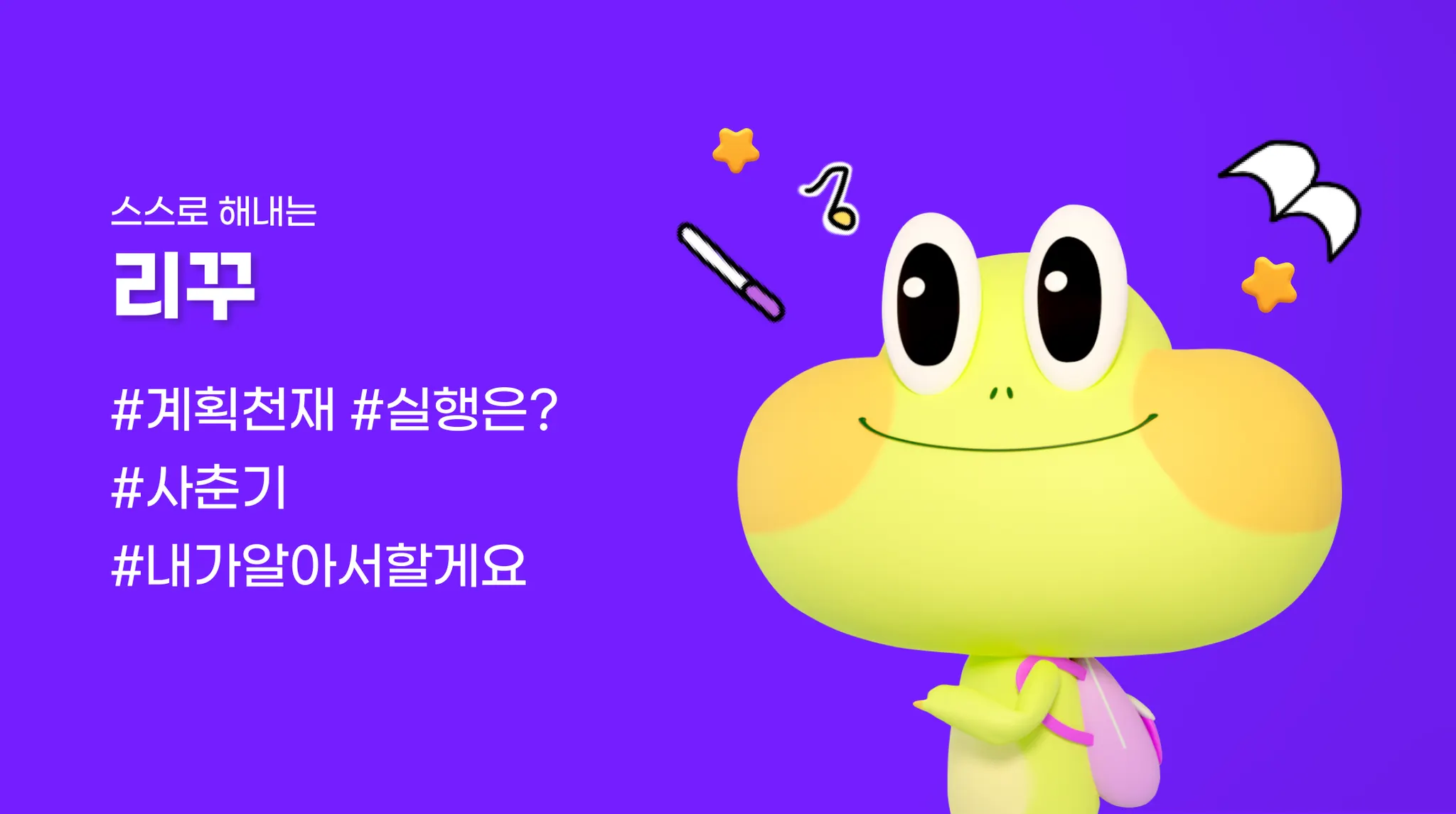 청개구리 리꾸는 스스로 해내는 것을 도전하는 멋진 친구랍니다. 우리 친구들도 리꾸와 함께 즐겁게 해낼 수 있도록 26종의 이모티콘을 만들었어요.